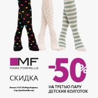 Только до 12 марта в фирменных магазинах Mark Formelle, а также в интернет-магазине markformelle.com дарим скидку -50% на третью пару классических и полиамидных детских колготок.